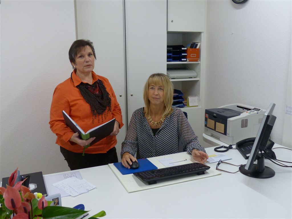 Wir, Monika Eusemann und Monika Göb (Bild rechts), sind Ihre Ansprechpartner(innen) im Pfarramt; unterstützen sie hilfreich in Ihrem Anliegen und stehen Ihnen gerne für Auskünfte und Informationen zur Verfügung. Das Bild zeigt aktuell noch Frau Hildegard Riegler (Bild links), die sich bereits in den verdienten Ruhestand verabschiedet hat.